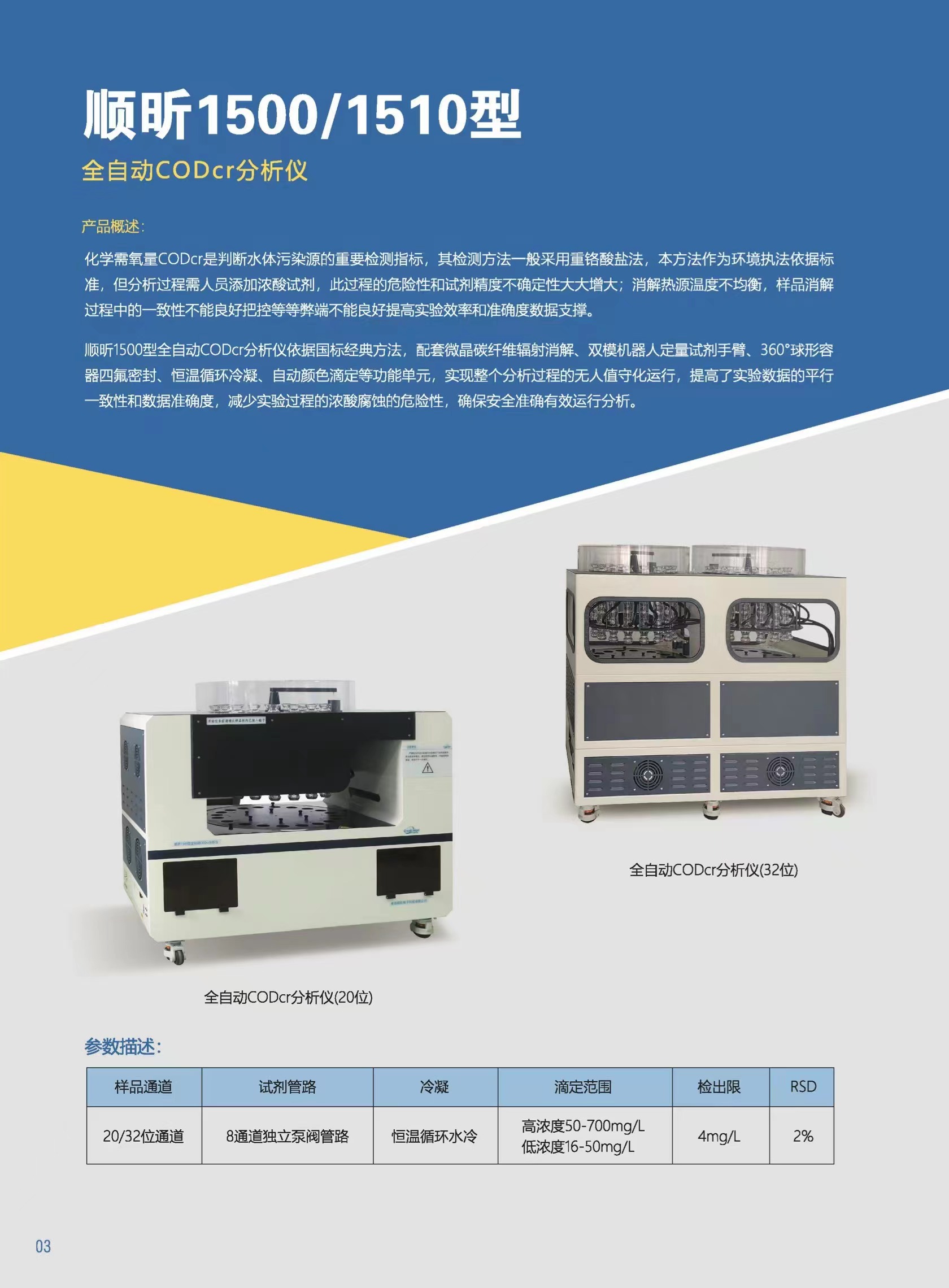 20/32位通道 | 8通道独立泵阀管路 | 恒温循环水冷 | 高浓度50-700mg/L 低浓度16-50mg/L | 4mg/L | 2% |