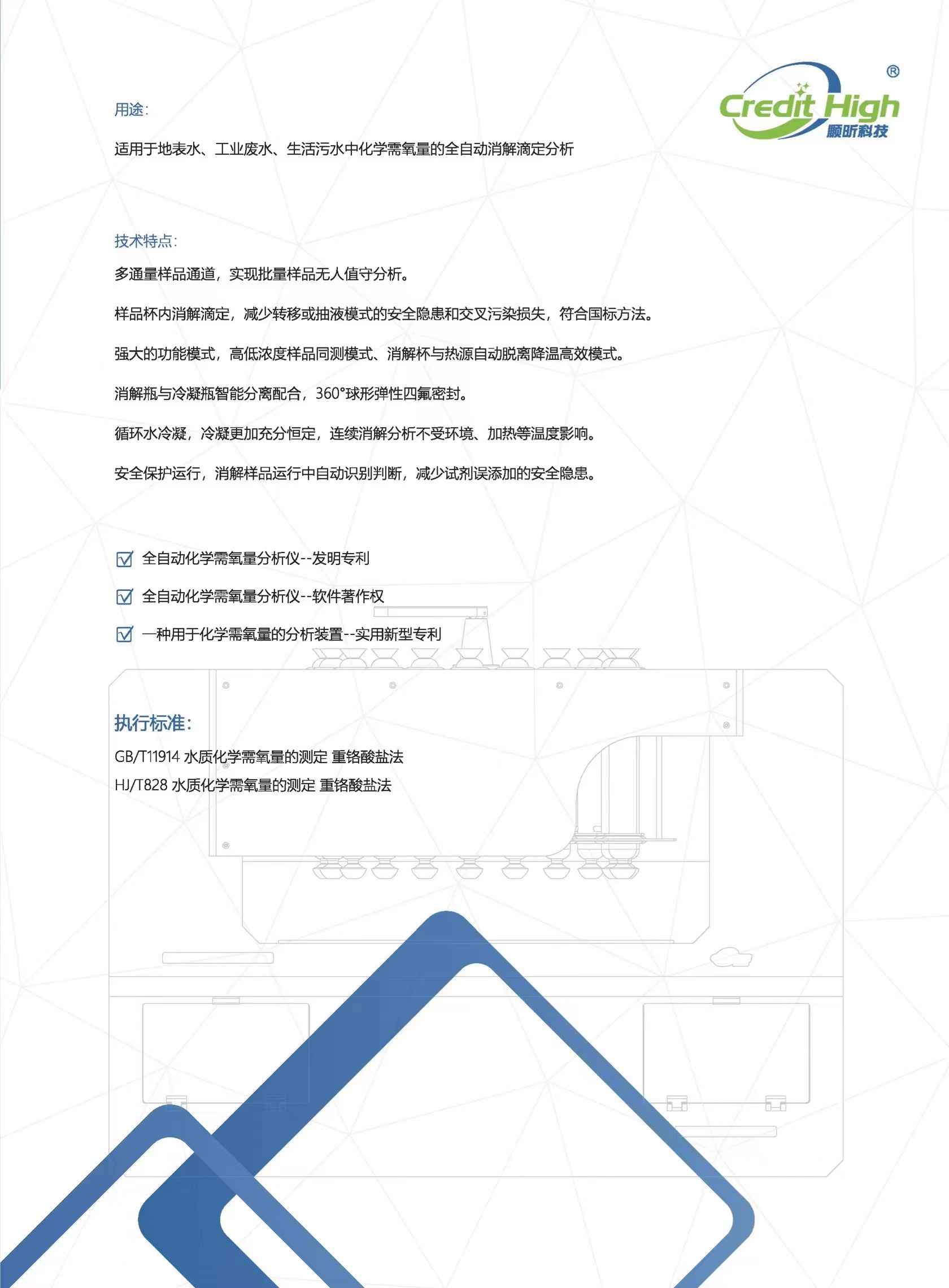 适用于地表水、工业废水、生活污水中化学需氧量的全自动消解滴定分析